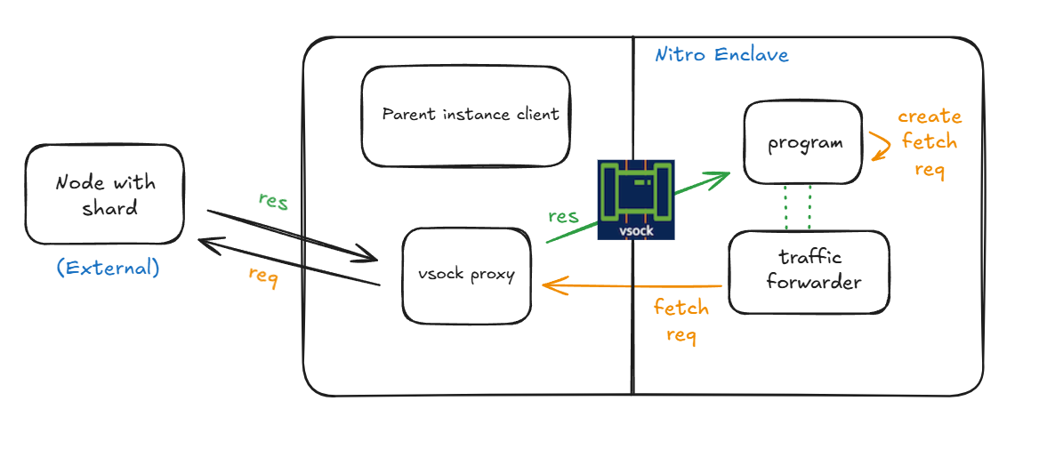 Nitro enclaves uses the vSock proxy to call the external endpoint through the parent instance's networking.