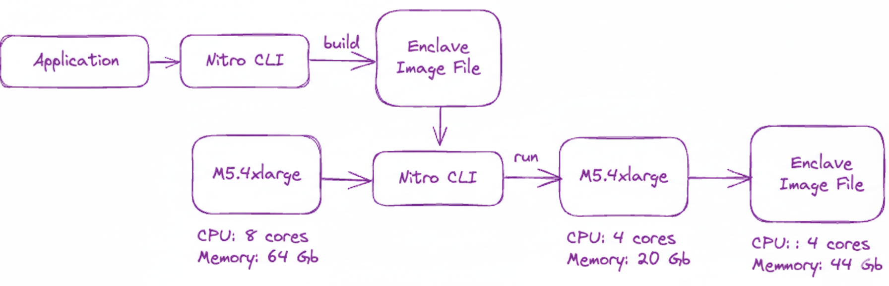 This image then can be used to invoke a new enclave running inside the specified hardware using Nitro CLI and allocating resources that would be required to run the enclave image.
